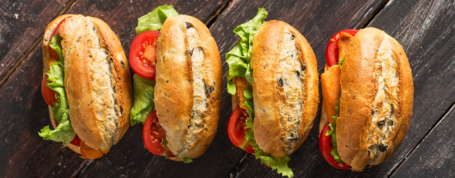 Margarida: Peito de peru defumado, queijo prato, tomate, alface e maioneseSempre Viva: Presunto cozido, queijo prato, tomate, alface e pasta de ervas
